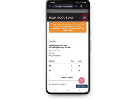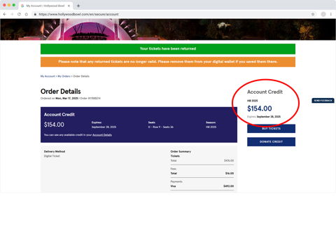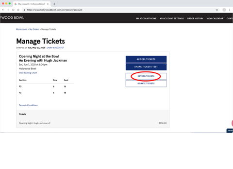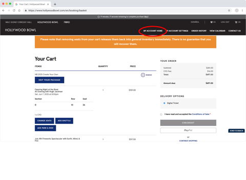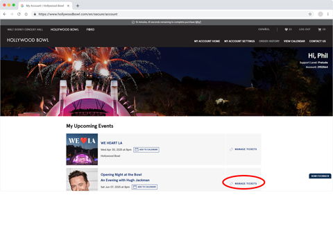 Log in to your Hollywood Bowl account (at top of this page).